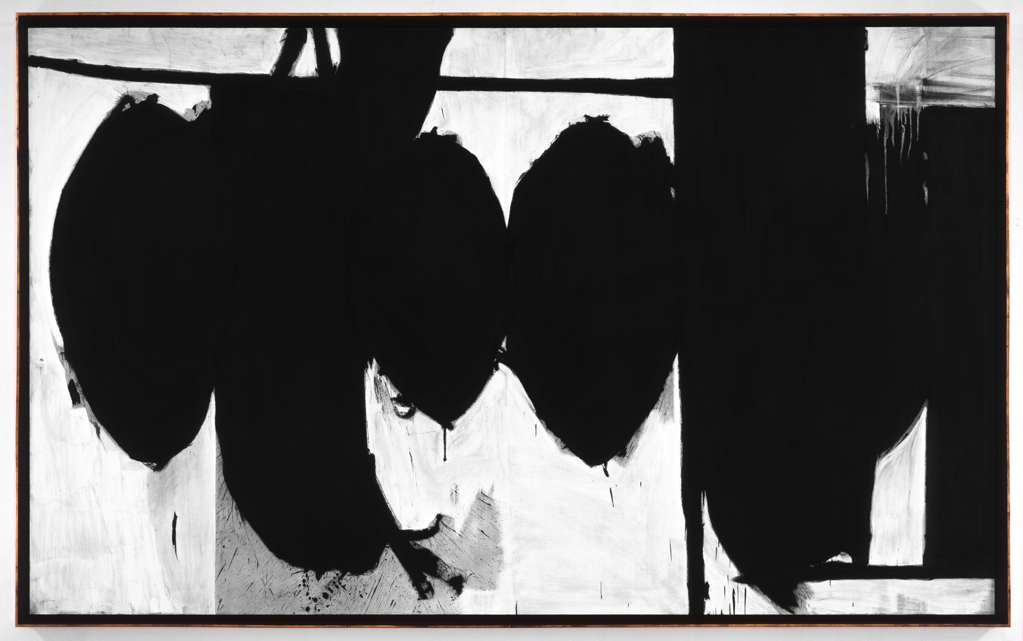 Untitled (After Motherwell, Elegy to the Spanish Republic, 70, 1961), 2013 Charcoal on mounted paper 69 x 114 inches (175.3 x 289.6 cm)